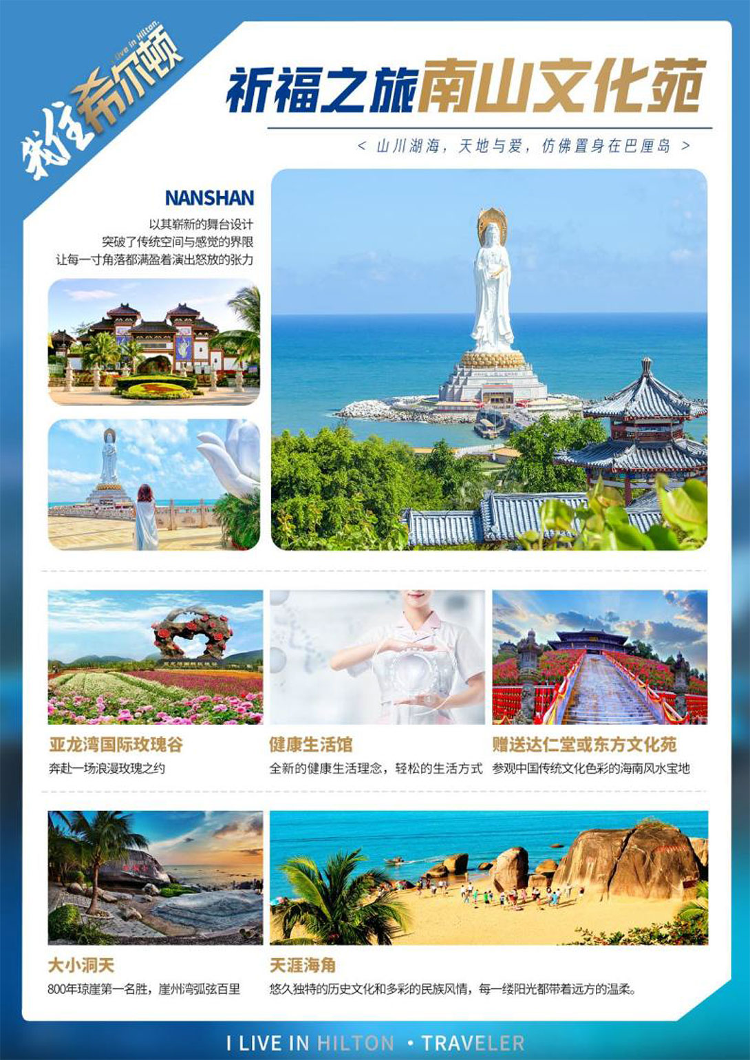玫瑰谷(游览约60分钟)位于三亚市亚龙湾国际旅游度假区内,是以“玫瑰之约,浪 漫三亚 ”为主题,以农田、水库、山林的原生态为主体,以五彩缤纷的玫瑰花为载体,集玫瑰种植、玫瑰文化展示、旅游休闲度假于一体的玫瑰谷;也成为拍摄婚纱外景的胜地; 南山(游览约120分钟)国家重点风景名胜区、全国文明风景旅游区示范点;每年都令数百万的海内外游客流连忘返,被游客誉为“梵天净土,世外桃源”;其中,世界吉尼斯纪录-108 米海上观音是当之无愧的亮点之一,闻名全海南的镇岛之宝; 天涯海角(游览约90分钟)游览国家 4A 级景区、热带海滨公园,景区海天一色,烟波浩翰,帆影点点,椰林婆娑,奇石林立,让爱与您同在;