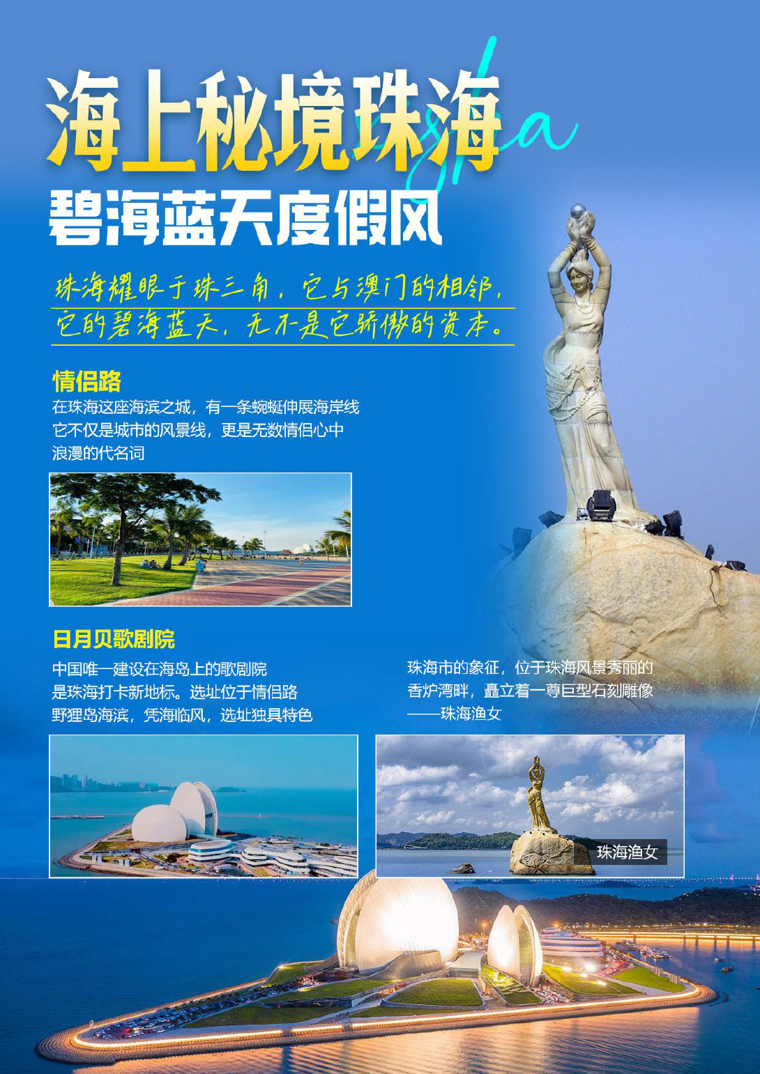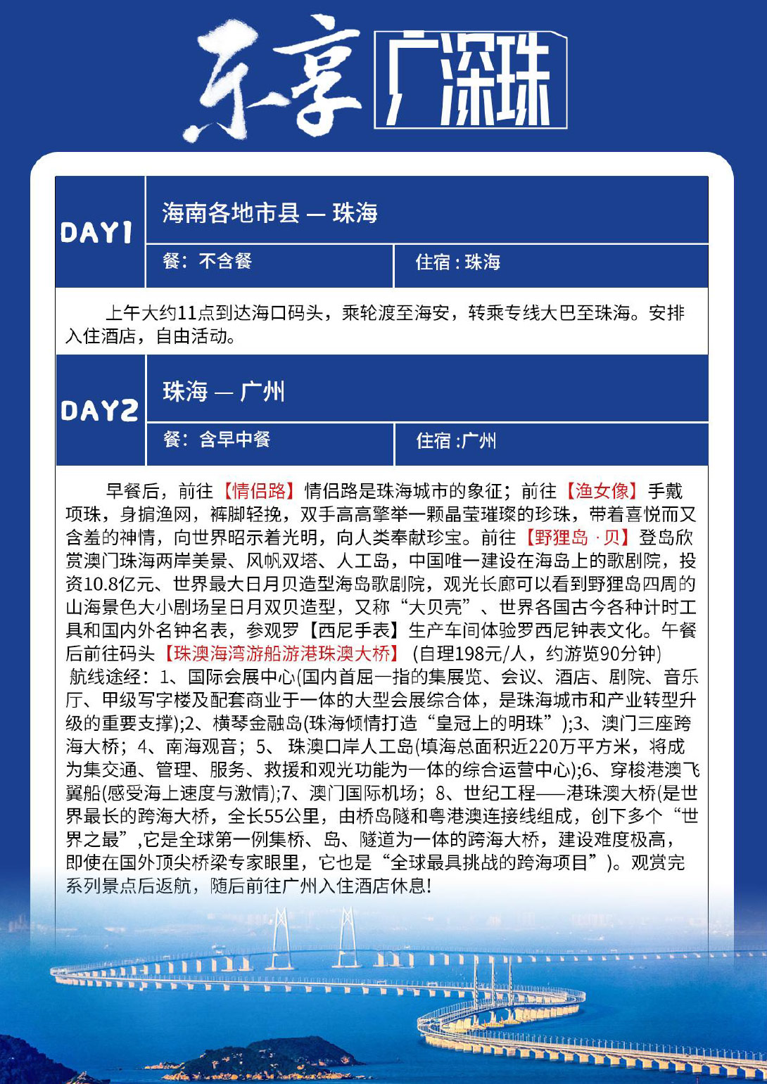 情侣路-渔女像-日月贝-船游港珠澳大桥 住:广州