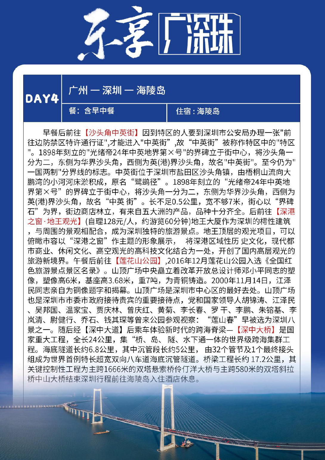 中英街-深港之窗·地王观光-莲花山公园-深中大桥 住:海陵岛