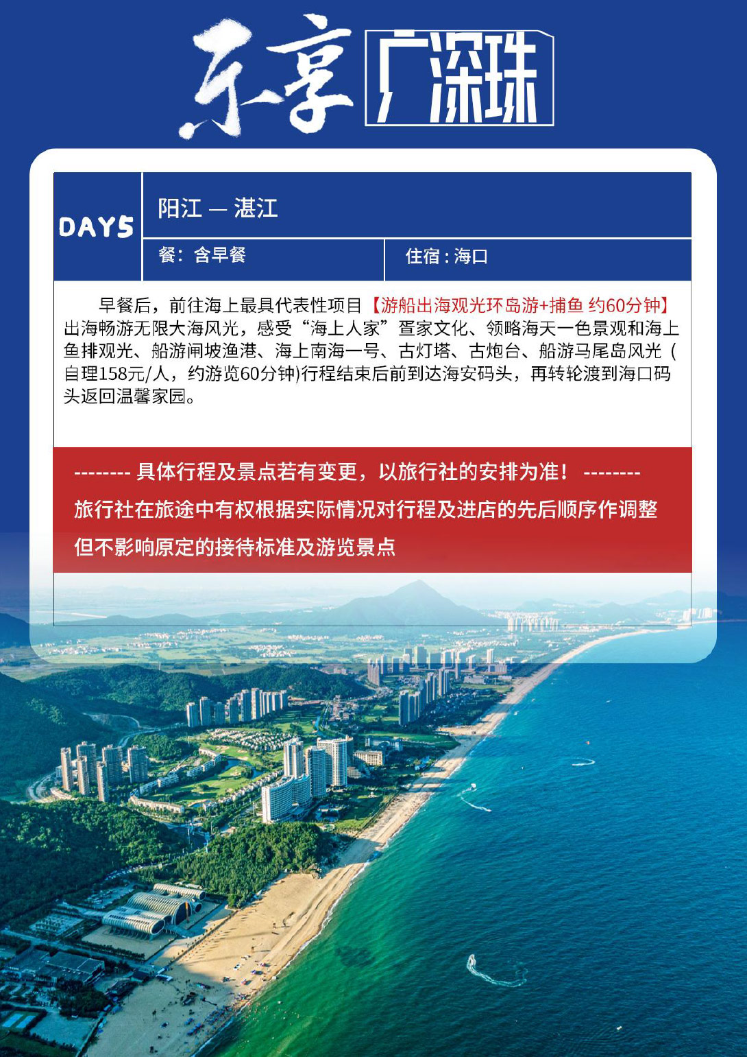 游船出海观光环岛游+捕鱼-海口码头返回温馨家园 住:温馨家园
