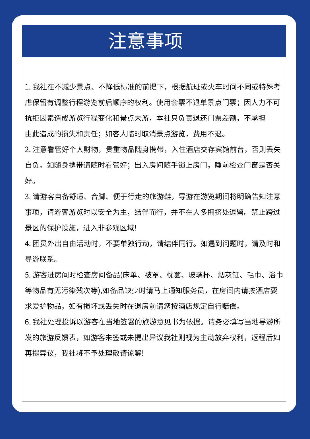 任何未尽事宜,燕子旅行有权根据实际情况进行调整,并保留随时修改、暂停或终止行程的权利。
