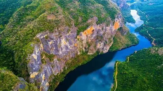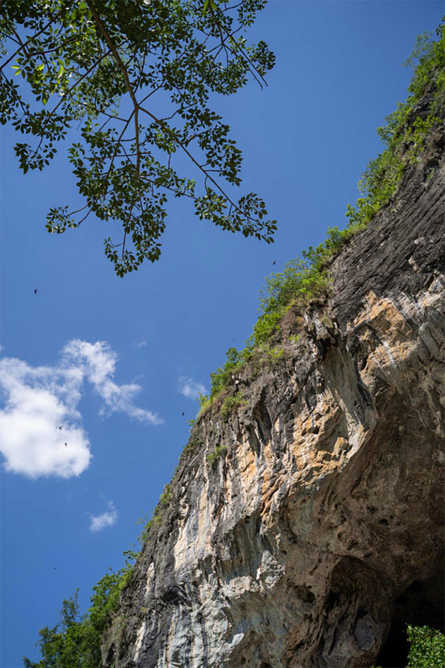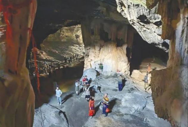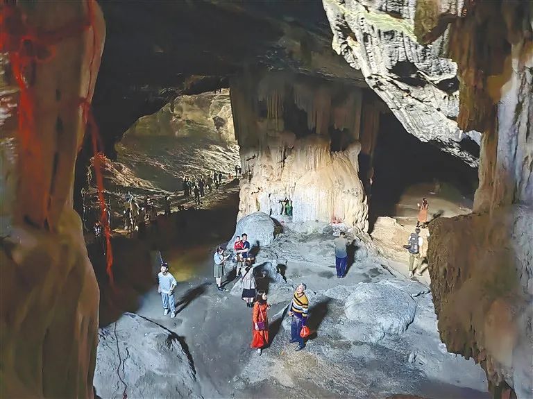 皇帝洞依山傍水,洞口就在南瑶河边,从远处眺望,象一头张口的大水牛。洞口很大,可容纳上万人。游人踏入洞门,洞中群燕飞舞,吱啁呢喃,象在欢歌笑语迎游人。